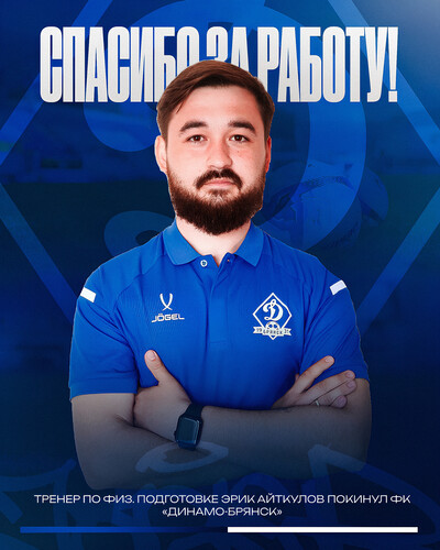 Футбольный Клуб "Динамо-Брянск" покинул тренер по физической подготовке Эрик Айткулов. Специалист присоединился к динамовцам в прошлом сезоне и помог команде завоевать золотые медали Первенства LEON-Второй лиги Б. Мы благодарим Эрика Ильшатовича за работу и желаем успехов в будущей деятельности.