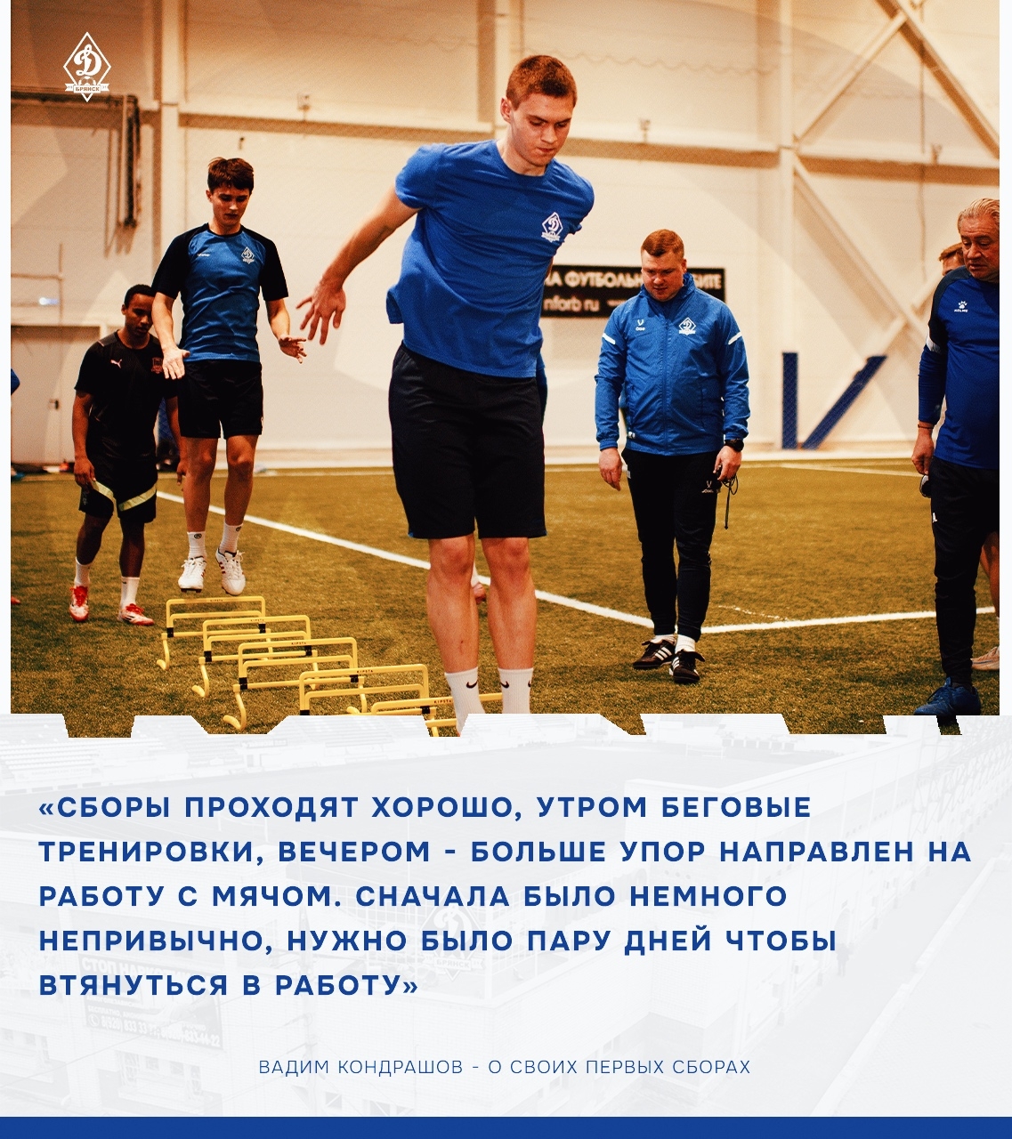 Вадим Кондрашов поделился мыслями о своих первых сборах с основном командой: - Сборы проходят хорошо, утром беговые тренировки, вечером - больше упор направлен на работу с мячом. Сначала было немного непривычно, нужно было пару дней чтобы втянуться в работу. Наш день на сборах начинается просто. Мы просыпаемся, идём на взвешивание, а потом на завтрак. Далее у нас начинается первая тренировка в парке в горах, по окончании первой тренировки, в некоторые дни бывает тренажерный зал, это уже по установке тренеров. Мы выполняем объемную работу и идем на обед, отдыхаем и уже выезжаем на вторую тренировку - на само поле. После неё у нас всегда проходят восстановительные процедуры. Ходим в бассейн и в баню. ... Читать дальше » |