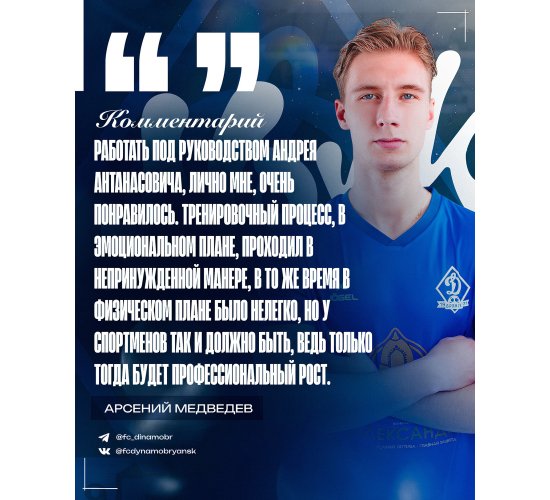 «Прошедший сезон был полон ярких красок и событий, которые мы пережили всей командой. Было очень много ежедневной работы, начиная со сборов и продолжая весь цикл в 30 туров. В целом, было приятно ощущение от хода сезона, а особенно в конце, когда мы уже выполнили поставленную задачу. Завершившееся Первенство точно могу добавить себе в актив. Работать под руководством Андрея Антанасовича, лично мне, очень понравилось. Тренировочный процесс, в эмоциональном плане, проходил в непринужденной манере, в то же время в физическом плане было нелегко, но у спортсменов так и должно быть, ведь только тогда будет профессиональный рост. Знаю, что на поле должны присутствовать, так называемые, «лимитчики». В следующем сезоне, я им ещё буду являться. В плане развития самого игрока, это безусловный плюс, а если говорить о по ... Читать дальше » |