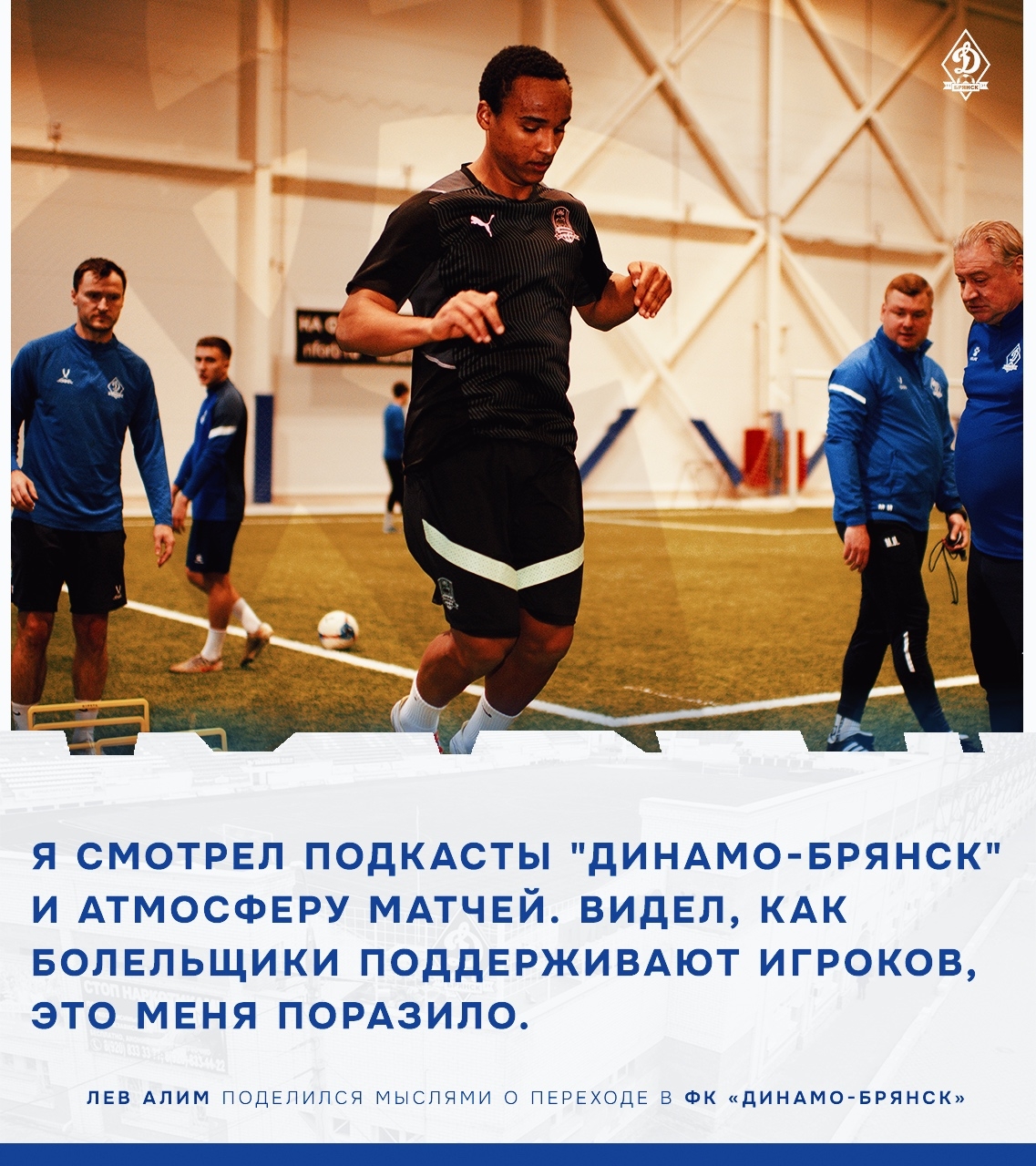 Первое подписание динамовцев в 2026 году - Лев Алим. Мы пообщались с новичком команды, а он поделился своими мыслями о переходе в стан сине-белых. - Лев, добро пожаловать к нам в клуб! Расскажи о себе: где начинал играть в футбол, как начинался твой путь? |