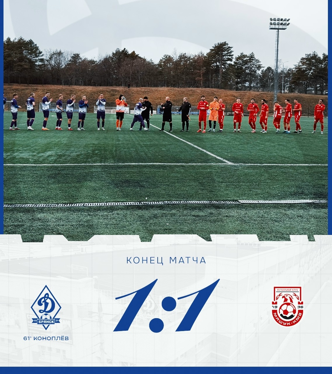 Брянские динамовцы встречались с пятигорским «Машуком-КМВ». Финальный свисток зафиксировал ничью 1:1. Единственный гол в составе брянской команды забил Даниил Коноплёв. Впереди у динамовцев три выходных, а с 12-го по 27-е февраля пройдёт заключительный сбор, местом проведения которого станет Абрау-Дюрсо.