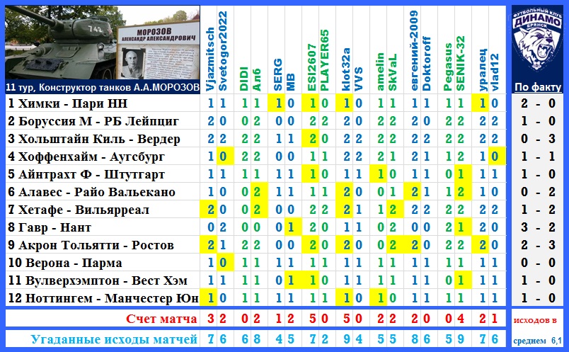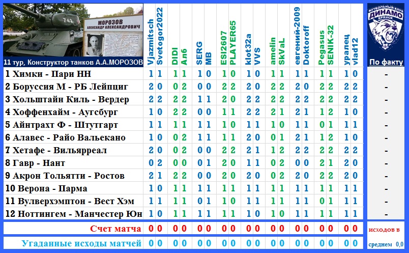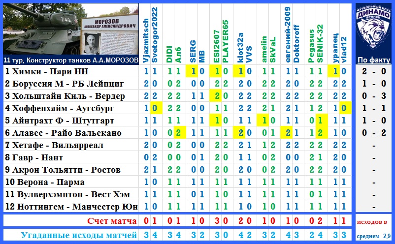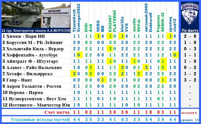 | Ставки на 11 тур: