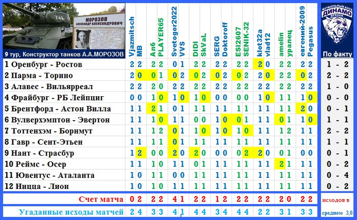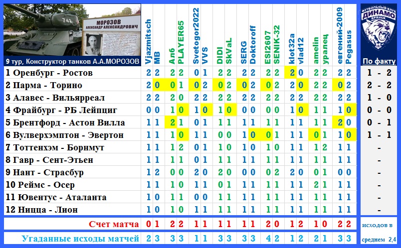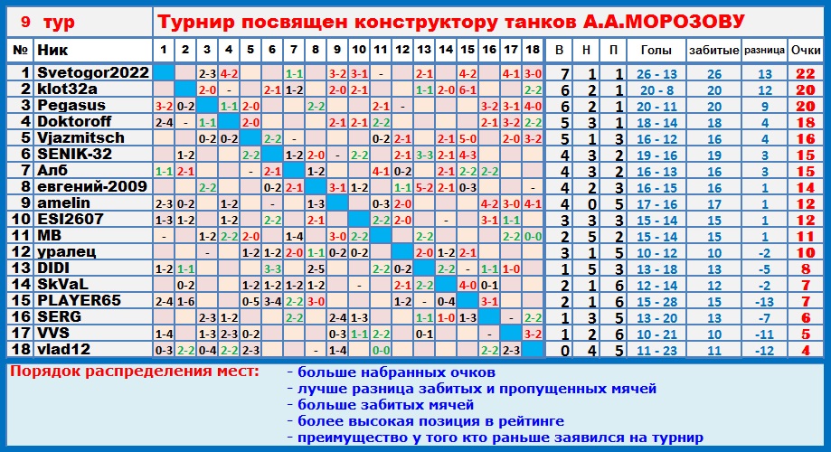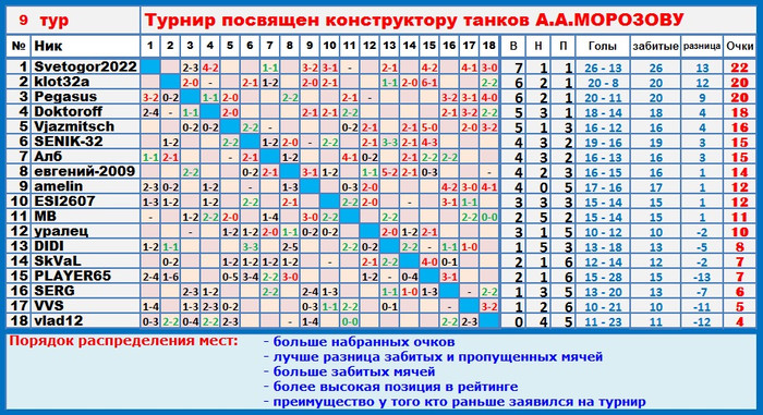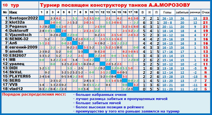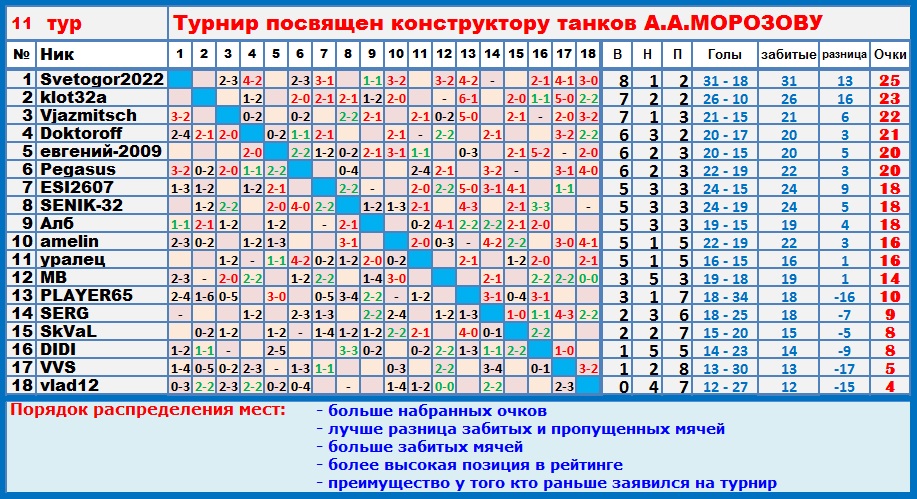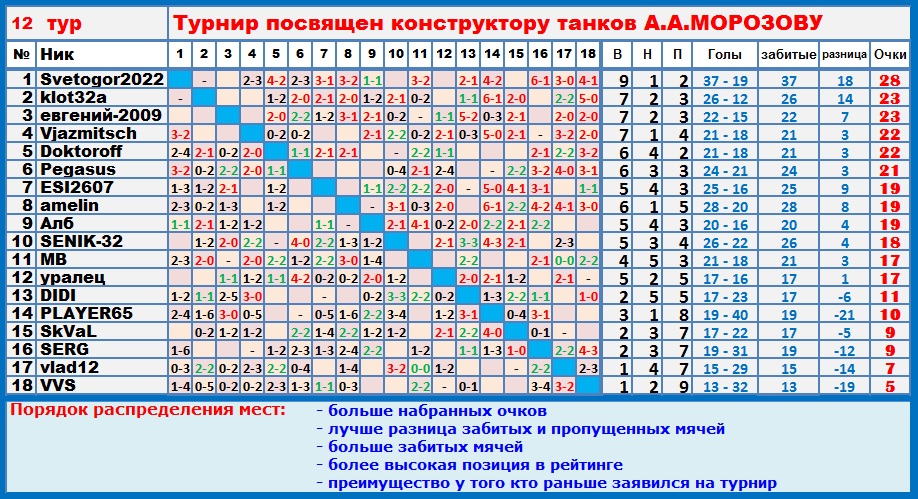 | Почему-то, Игорь, в таблице всем по 0:0 проставлено - проверь, пожалуйста...