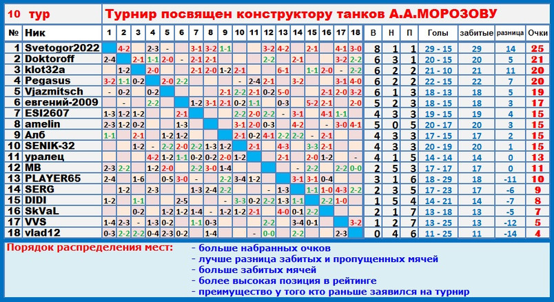 | За 10 тур всем за считалось 0-0. Мой косяк.