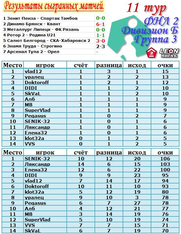 | Предварительный результат 11 тура.