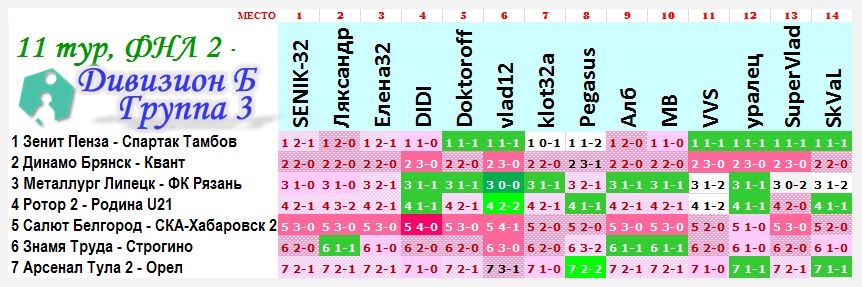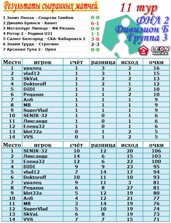 | Ставки на 11 тур: