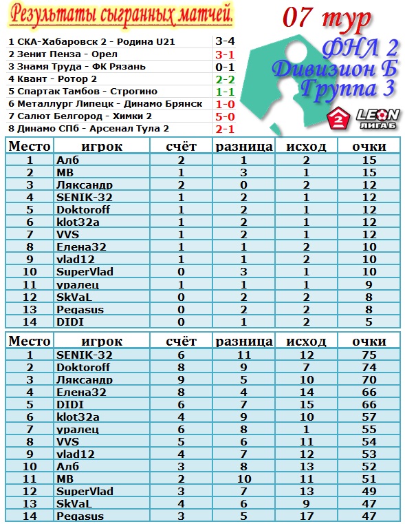 | --Итог 7 тура: