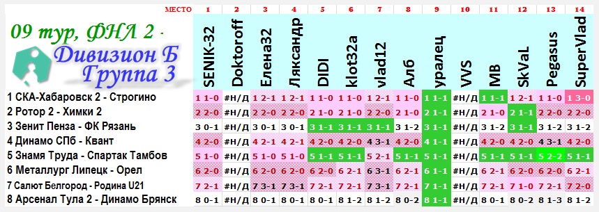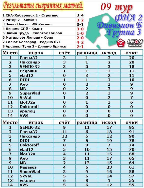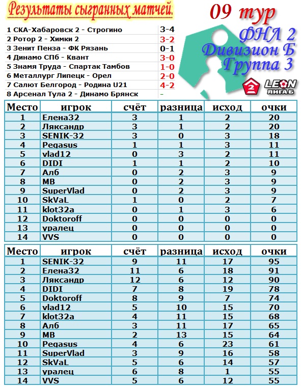 | Ставки на 9 тур: