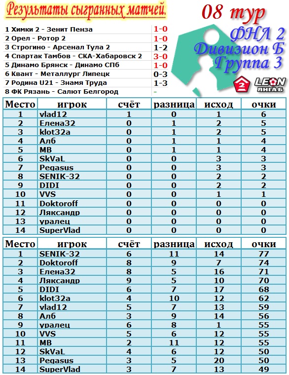 | Предварительный результат 8 тура.
