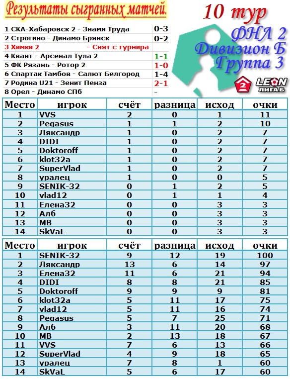 | --Итог 10 тура: