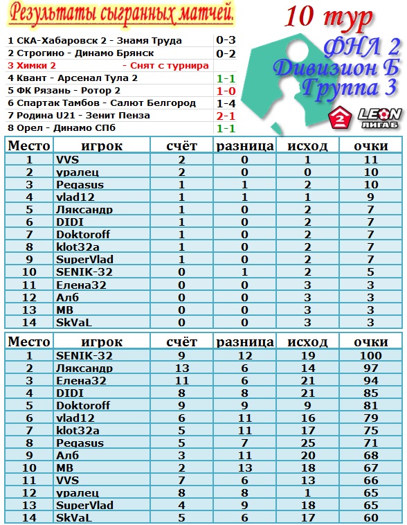 | Предварительный результат 10 тура.
