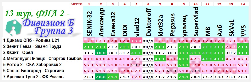 | Ставки на 13 тур: