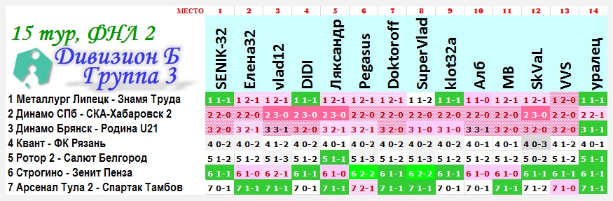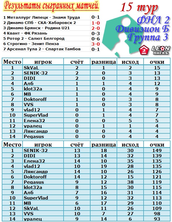 | --Предварительный результат 15 тура.