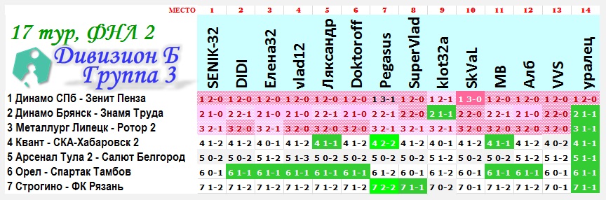 | --Ставки на 17 тур: