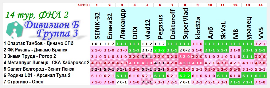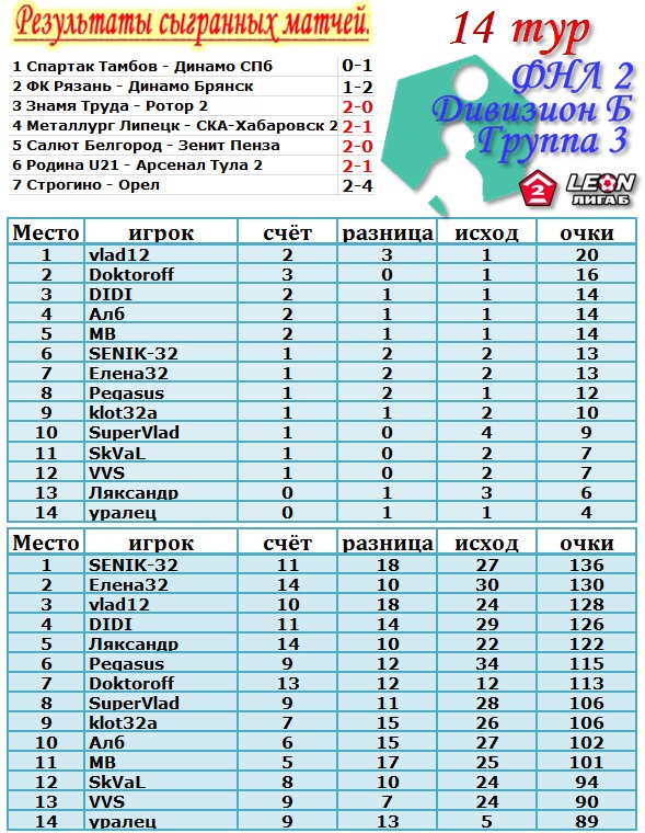 | --Результат 14 тура.