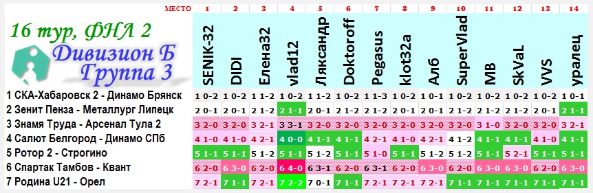 | --Результат 16 тура.