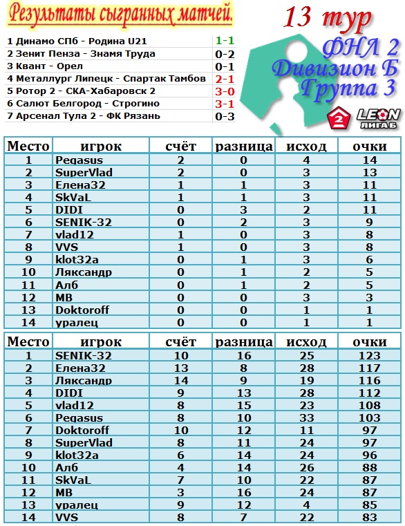 | --Результат 13 тура.