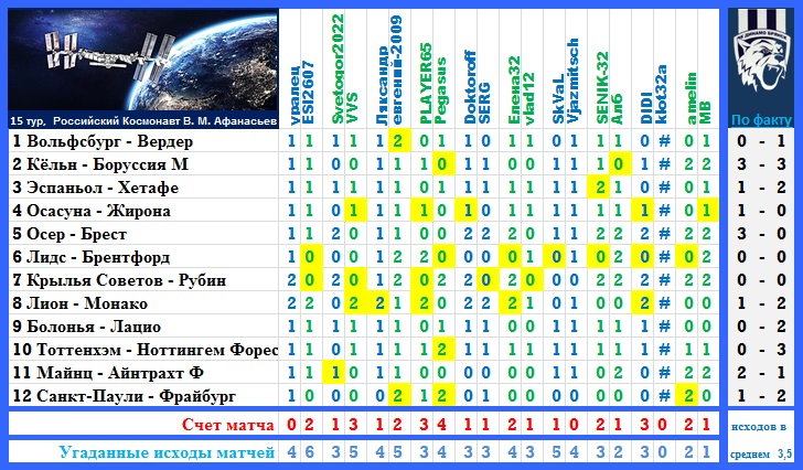 | --Результат 15 тура.