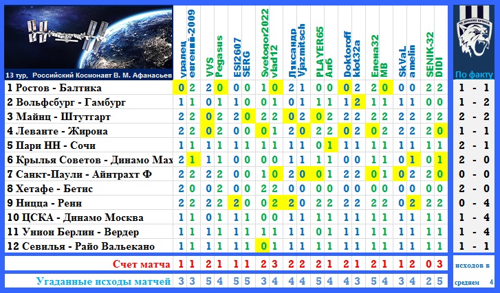| --Результат 13 тура.