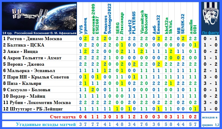 | --Результат 14 тура.