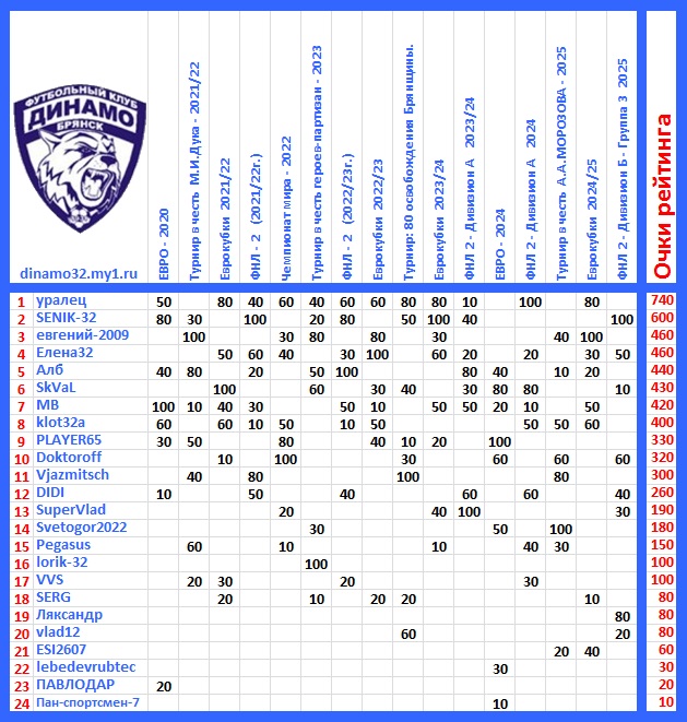 По итогам каждого тура выше место в таблице занимает участник, имеющий: - больше набранных очков(Σ основной и дополнительной ставки) ; - больше точных счетов(в основной ставке); - больше угаданных разниц мячей(в основной ставке); - больше угаданных исходов(в основной ставке); - более высокая позиция в таблице общего рейтинга на начало этого турнира.