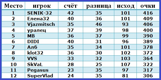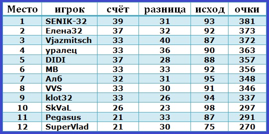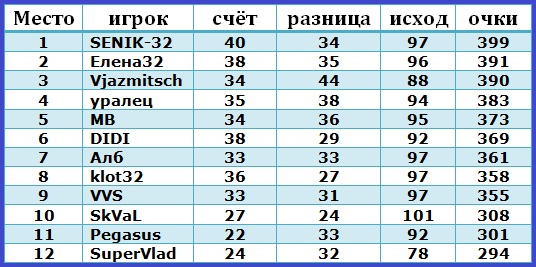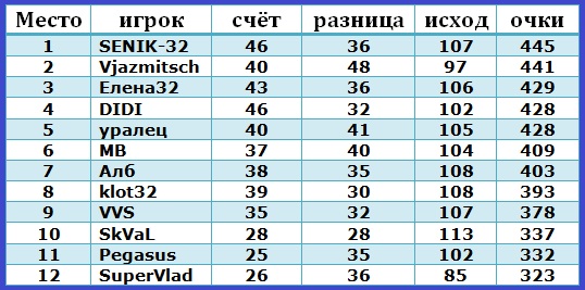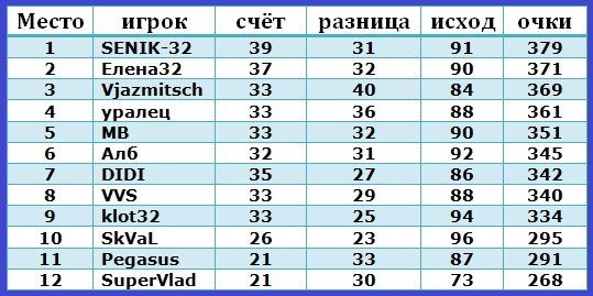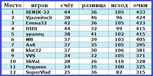 |  Турнир закончен. Всех благодарю за участие. Призёров с победой!