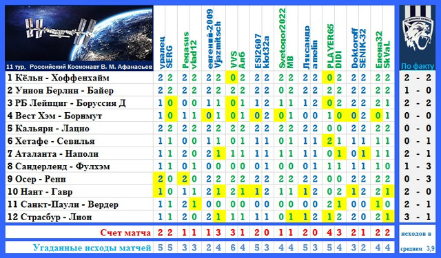 ТУРНИРНАЯ ТАБЛИЦА