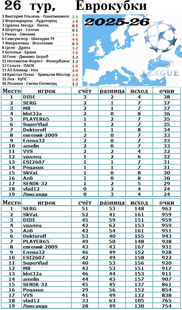 Результат 26 тура.