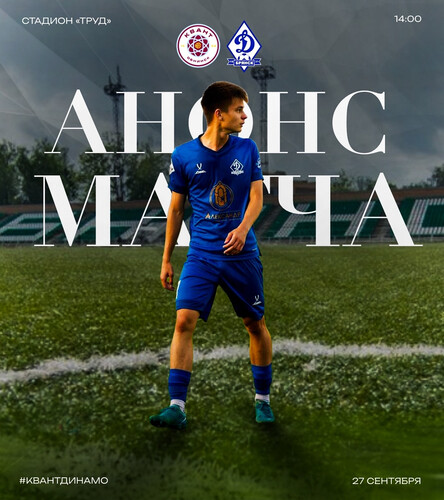 В эту субботу, 27-го сентября, динамовцы проведут гостевой поединок 25-го тура Первенства LEON-Второй лиги Б. Сине-белые сразятся с ФК «Квант» (Обнинск).