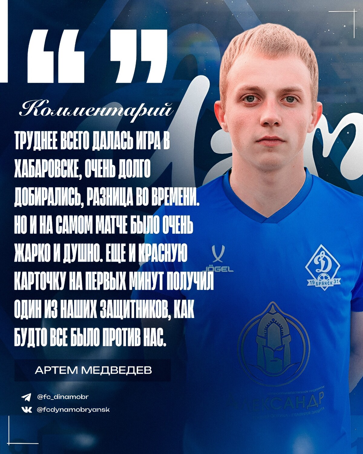 Воспитанник брянского футбола Артём Медведев, который вернулся в нашу команду этим летом, стал одним из ключевых игроков победного сезона! Он поделился с нами впечатлениями от прошедшего розыгрыша Первенства Второй лиги Б.