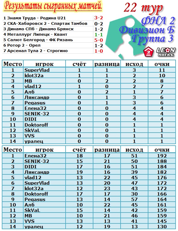 Результат 22 тура.